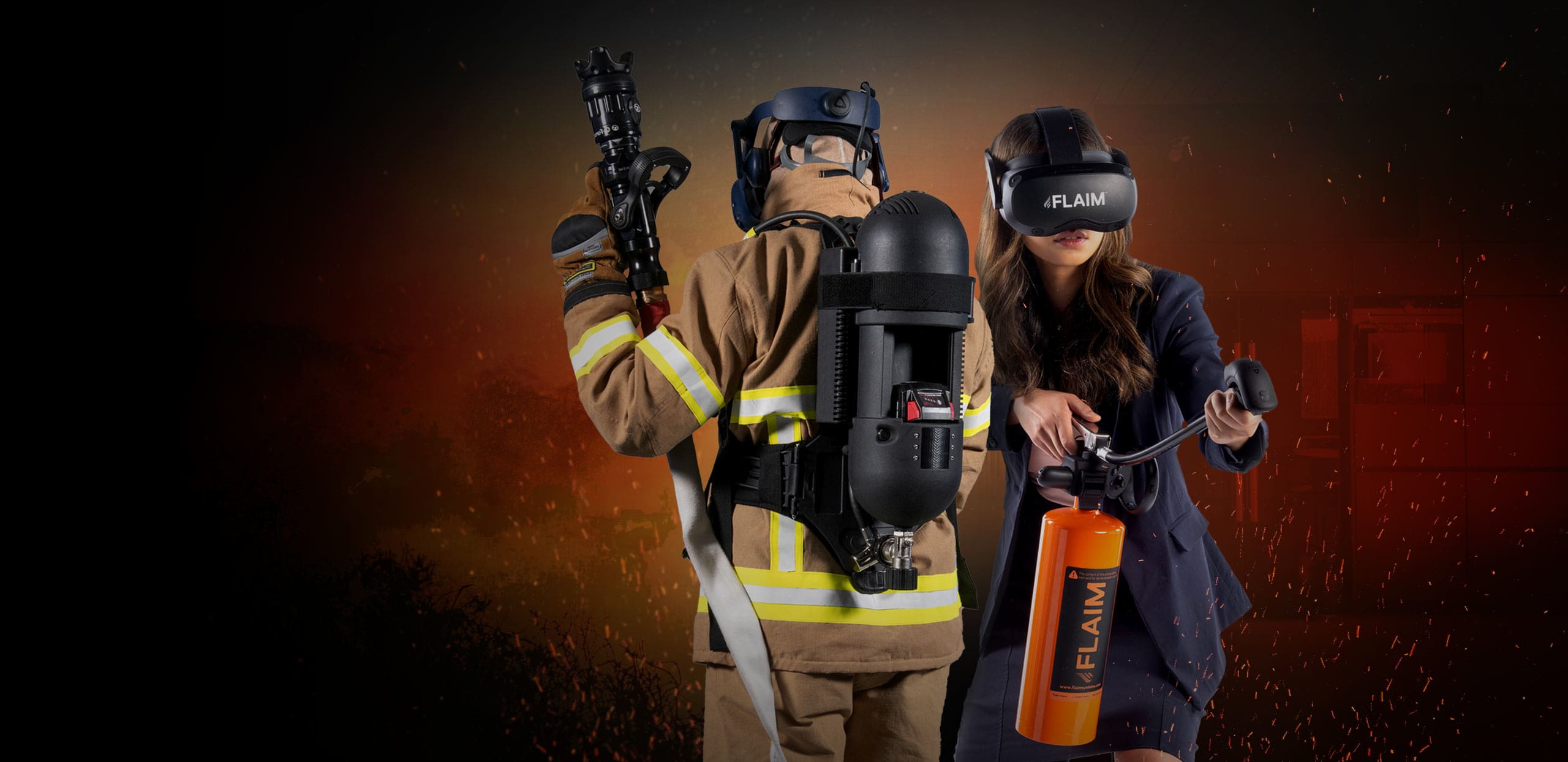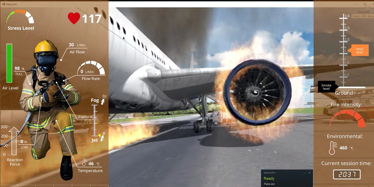 Flaim Trainer is an advanced firefighter training solution that integrates virtual reality with a suite of haptic technologies, including a force-feedback hose, breathing apparatus, and heat suit. It enables firefighters to safely train for dangerous, rare, or environmentally restricted scenarios - situations that would otherwise be too costly, resource-intensive, or impossible to reproduce.
